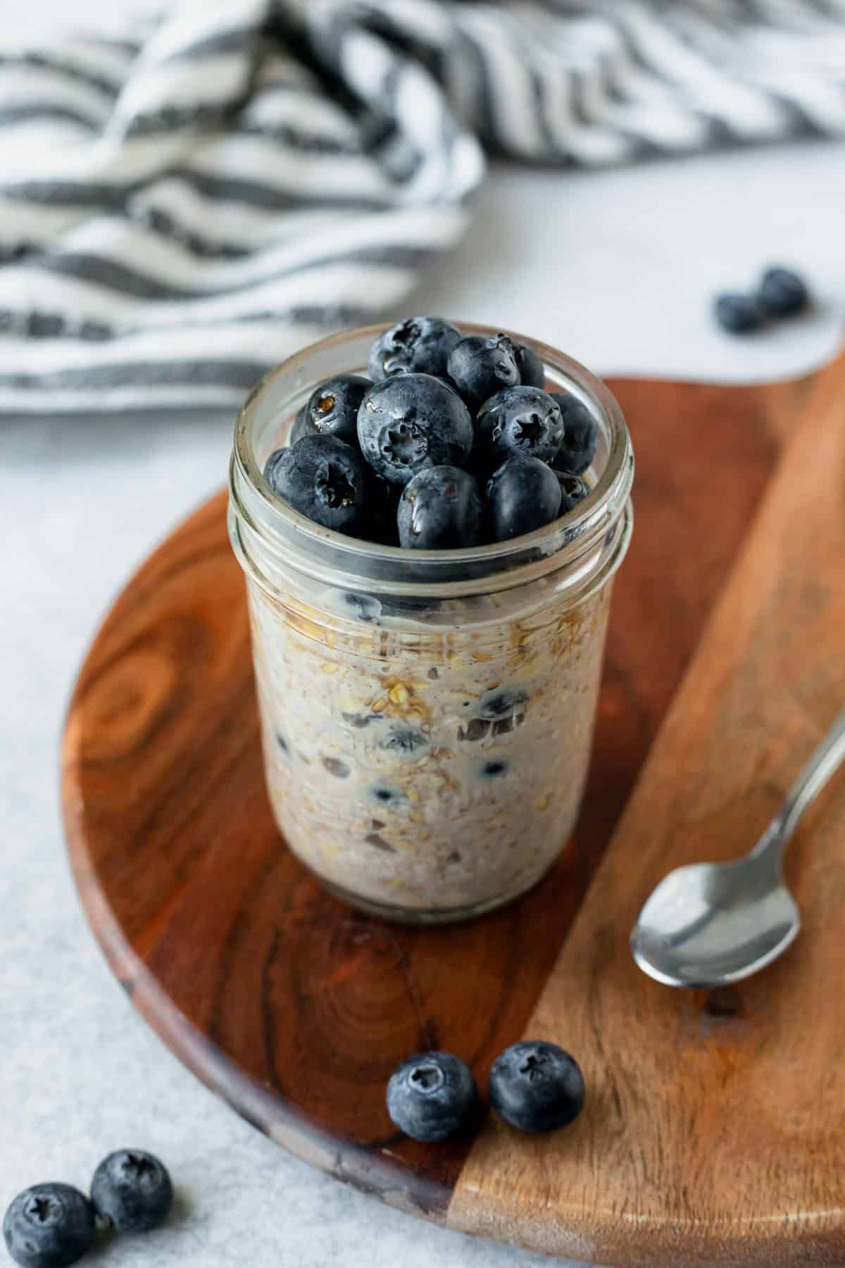 My Peanut Butter and Banana Overnight Oats recipe is one of the most popular recipes on this blog. It’s incredibly delicious! However, if you prefer a lighter oatmeal, or just love the flavor blueberries, then these Blueberry Overnight Oats are definitely worth trying.